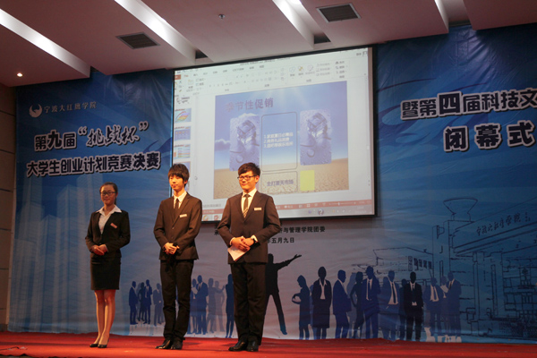 今年的大学生创业计划大赛历时一个半月,经过前阶段各分院的初赛、复赛,八支队伍进入了最后的总决赛。决赛分为PPT展示和陈述,评委老师提问两个环节,八组团队依次展示各自成果。