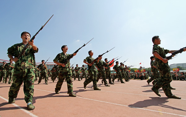 闭幕式上,军训教导队还进行了方阵军事技能、军体拳表演,精彩的表演赢得了现场的阵阵掌声和欢呼声。