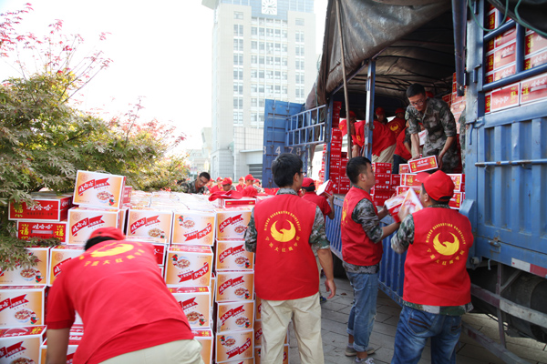 当晚17:20,本次志愿服务活动结束,据不完全统计,队员们共装卸了100多吨物资。志愿者们快速的动作、严明的纪律、不怕吃苦受累的作风,受到了当地政府、社会捐赠团体及市民的一致好评。
