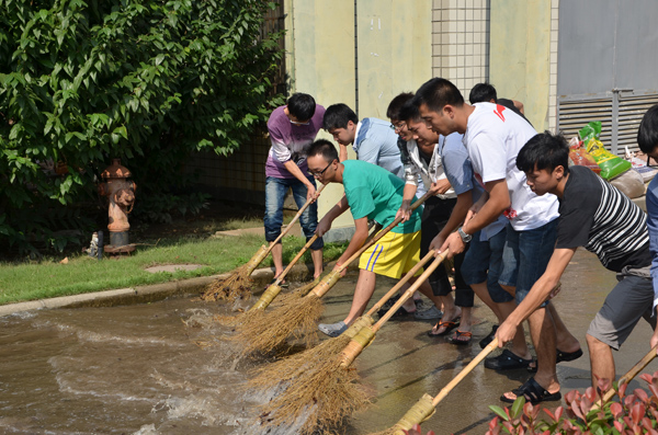 强台风“菲特”已经离去,但是给校园的影响还未消除,学校部分干道布满淤泥,部分区域弥漫着难闻的气味,给师生的学习生活带来诸多不便。为保证校园生活尽快步入正常轨道,10月10日下午,由校团学社近50名学生干部组成的校园环境清洁小分队在保卫处以及部分团委老师带领下忙碌在校园各个角落,耐心地清除风雨后留下的淤泥,细心地对每个垃圾桶进行消毒,对各类公共设施进行擦洗。经过近3个小时的奋战,校园面貌焕然一新。