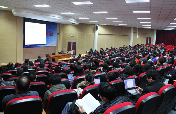 在具体介绍了“五位一体”的评估制度和评估体系后,陈新民教授以“四促进”、“三基本”、“两突出”、“一引导”对新一轮评估的核心进行了概括诠释。针对评估中的一级指标、二级指标及观察点,他逐条逐个进行了具体解释,并特别强调了几个关键指标和观察点。谈及迎评中需重点关注的方面时,他表示,合格本科评估“重在改、更在建”,这不仅是学校教学局部性的事,也是系统性的事;不仅要关注评估日,更要重视迎评促建的整个过程。同时,他认为,对自身的优势和薄弱点要有确切的了解——对优势方面,要进行深化和提升;对薄弱点,要提出详细的举措积极整改。此外,他还对教学管理、课题教学、试卷论文以及实验室基地等提出了具体目标,并对教师、学生和管理干部提出了总体要求。最后,陈教授从宏观、中观、微观这三个角度对评估的标准和要求作了概括性提示。