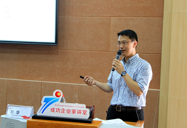 郭总在简单介绍自身情况后,以幽默风趣的语言简洁概括了从年轻时代至今的个人成长经历,讲述了他从一个工厂工程师到人事局的公务员,再到全球最大化学公司的人事经理,最后成为宁波均胜投资集团有限公司副总裁的整个过程。接着,他全面介绍了宁波均胜投资集团有限公司的发展状况及公司经营核心理念。他说,均胜的发展源于经营模式和经营理念的创新,而技术创新是均胜持续发展的根本,正因为不断创新,才让公司在短短十年时间从一个名不经传的小公司迅速扩大发展为一个跨国公司,在汽车部件技术领域成为龙头企业。对于个人学习及职业发展,他强调,在专业学习与职业发展中最重要的是掌握学习方法、开阔视野、培养品德;在勤奋努力的同时,不断创新自己的思路和方法,不断提高综合能力。此外,他还表示,广大同学要系统学习专业理论知识,并在个人职业发展中要充分了解职业生涯发展的多样性,为未来的就业打下基础。