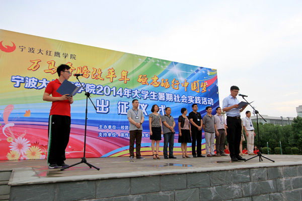 6月18日下午,我校以“万马奔腾改革年,砥志砺行中国梦”为主题的2014年大学生暑期社会实践出征仪式在校本部南区风雨操场举行。校长助理何秋叶出席并讲话,学工部、党委宣传部、教务处、校团委以及各分院党总支负责人参加了仪式。