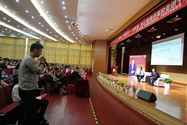访谈中,王掌权、项乐宏分享了自己的创业历程与感悟,并就行业发展和企业经营管理、创业创新等话题与大学生面对面交流,为广大学子指明就业方向。王掌权秉承“低调做人、高调做事”,主动承担社会责任的理念给在场师生留下了深刻印象;项乐宏则不断强调“专业创造财富,学习成就未来”的重要性,并一一解答在场学生的疑惑,独到的见解让同学们深受启发。最后,项乐宏勉励广大同学好好学习专业知识,培养创新意识,实实在在做事,成就更美好的未来。