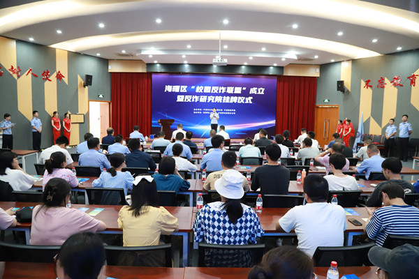 仪式现场还同步成立了海曙“校园反诈联盟”,该联盟成员包括我校及宁波工程学院、浙江工商职业技术学院、宁波外事学校、宁波第二技师学校、宁波市甬江职业高中、宁波市古林职业高中、海曙公安分局、海曙团区委、海曙区司法局等,未来将通过建立工作例会、案件通告、联合督导等各项机制,常态开展新形势下校园反诈研究工作。