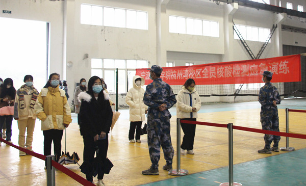 另据消息,我校杭州湾校区也于16日进行了全员核酸检测采样应急演练。
