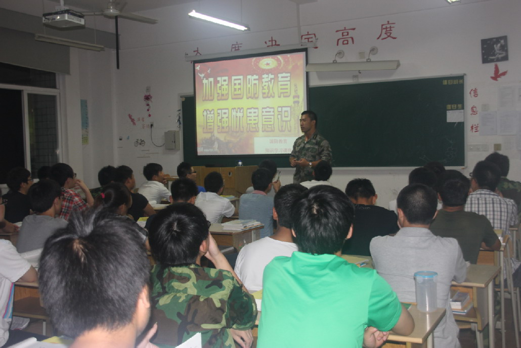 2014年9月6日晚,我校军训教导队组织2013级本科生参训学员进行了国防教育讲座。